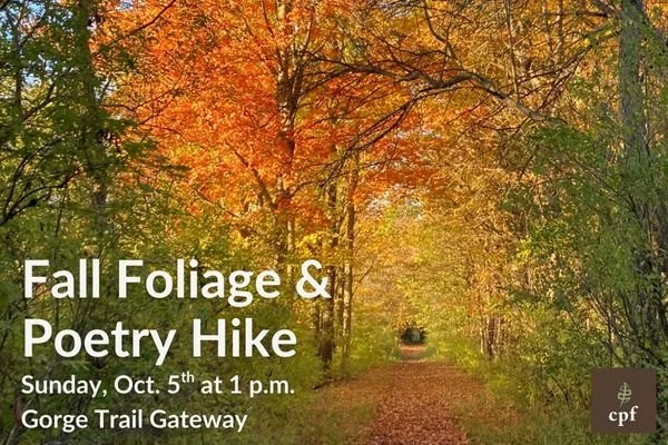 Join CPF for a free community hike celebrating the beauty of fall and the power of words. As we walk the Gorge Trail together, we’ll pause to admire the vibrant autumn scenery and enjoy readings by local adult and student poets of the winning entries from the 2025 Poetry on the Trail contest, inspired by this year’s theme: “Neighbors.”
